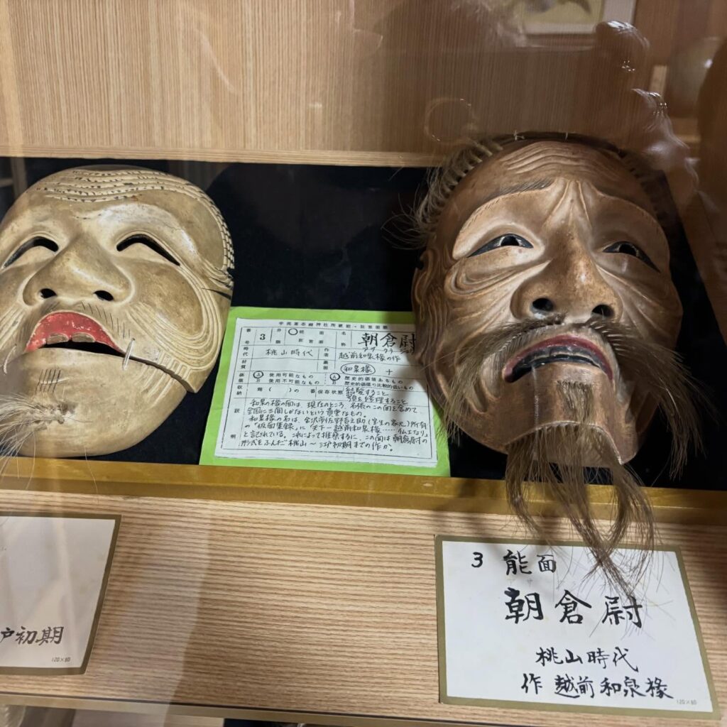 宇流冨志禰神社は、織田信長の時代に一度焼失したのちに再建された歴史のある神社で、日本に3体しか無いという貴重な能面なども拝見させていただきました。